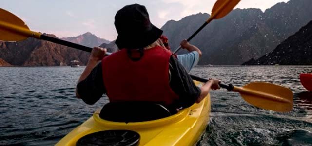 Kayak recreativo en aguas tranquilas del dique.